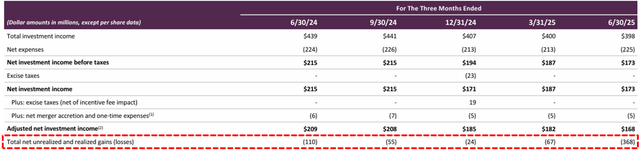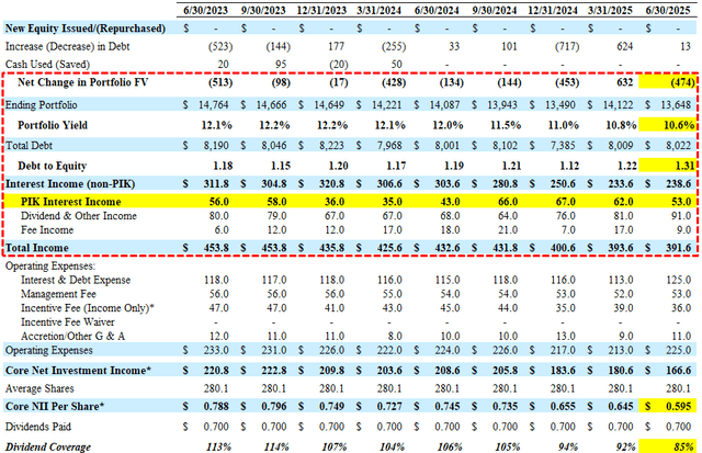 PIK Income: Remains extremely high at around 14% of total income for Q2 2025, but has averaged around 15% over the last four quarters.